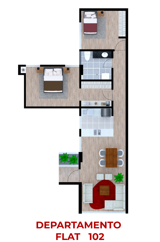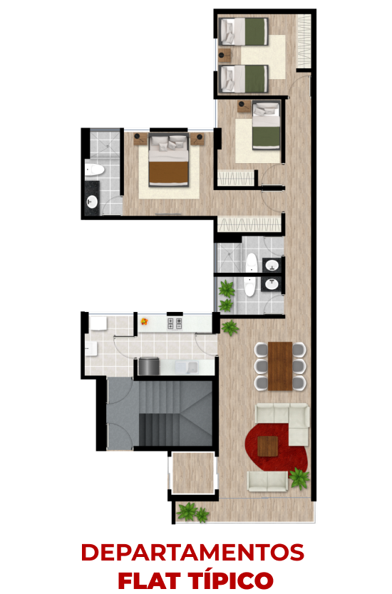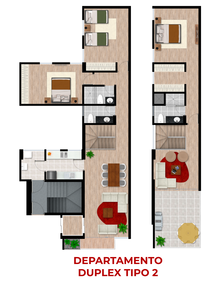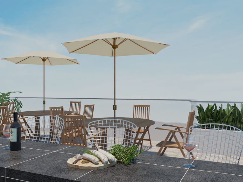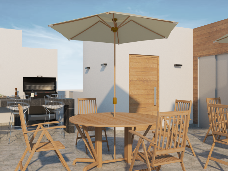 - Terraza común con baño y BBQ